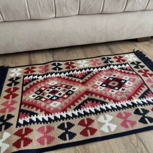 Covoarele traditionale sunt tesute dintr-un amestec de fire ce confera produsului calitati deosebite: pastreaza culorile intente, izoleaza termic si sunt potrivite pentru spatii cu trafic intens fiind usor de intretinut.